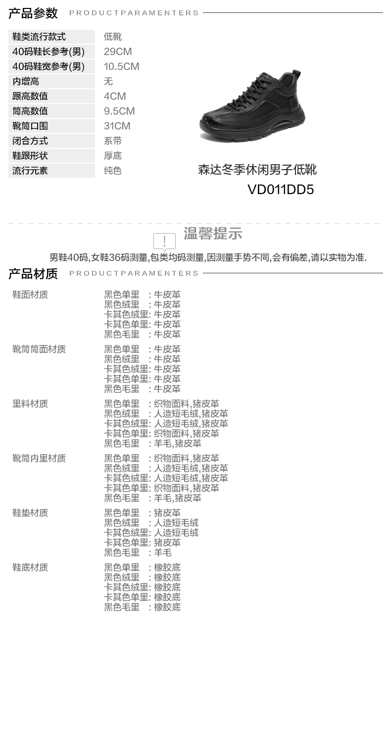 | 闭合方式:系带 | 40码鞋宽参考(男):10.5CM | 靴筒口围:31CM | 上市时间:2025年冬季 | 鞋类流行款式:低靴 |