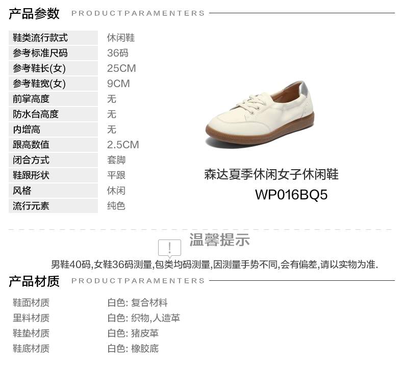 | 风格:休闲 | 跟高数值:2.5CM | 色系:白色 | 配跟:无 | 性别:女子 |