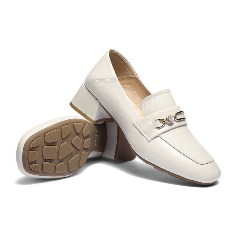 | 色系:米白 | 跟高数值:4CM | 性别:女子 | 里料材质:人造革织物猪皮革 | 制鞋工艺:胶贴皮鞋 |
