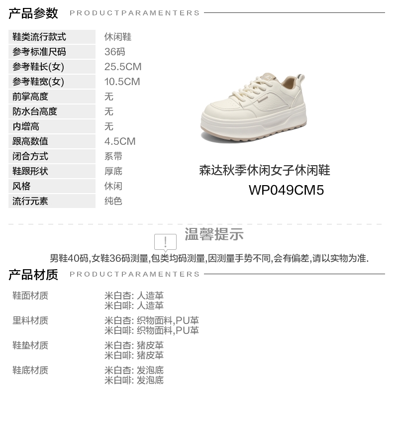 | 鞋跟形状:厚底 | 参考鞋长(女):25.5CM | 流行元素:纯色 | 参考鞋宽(女):10.5CM | 风格:休闲 |