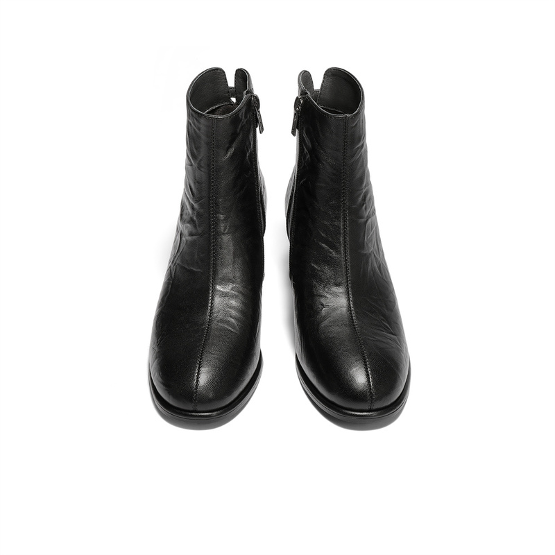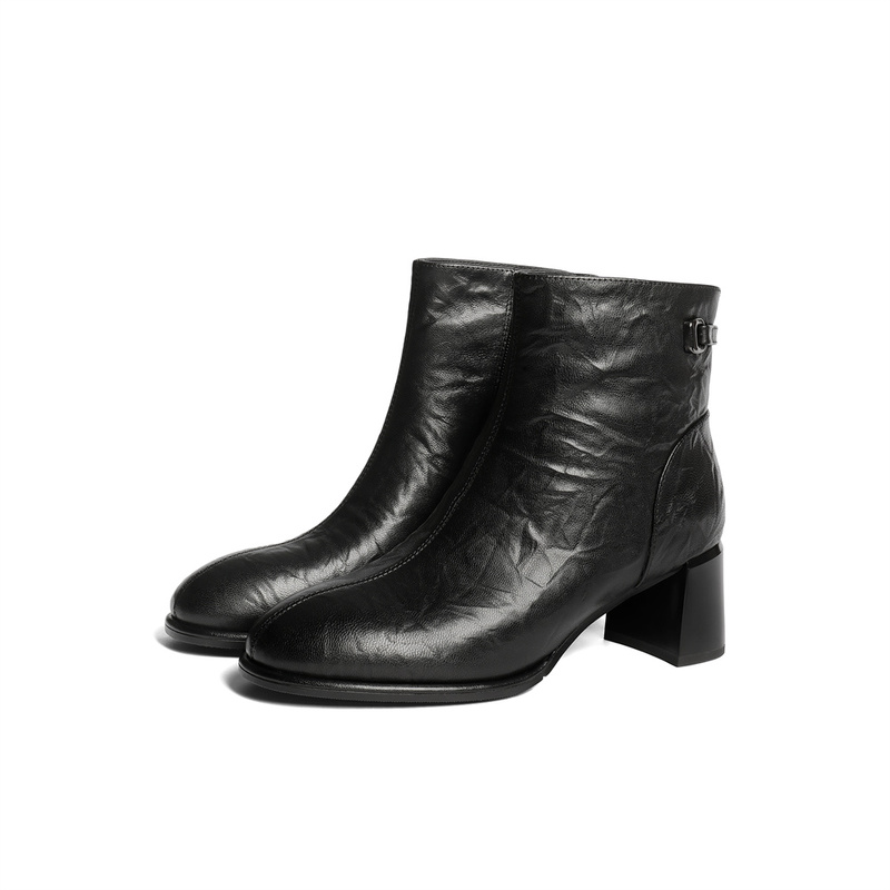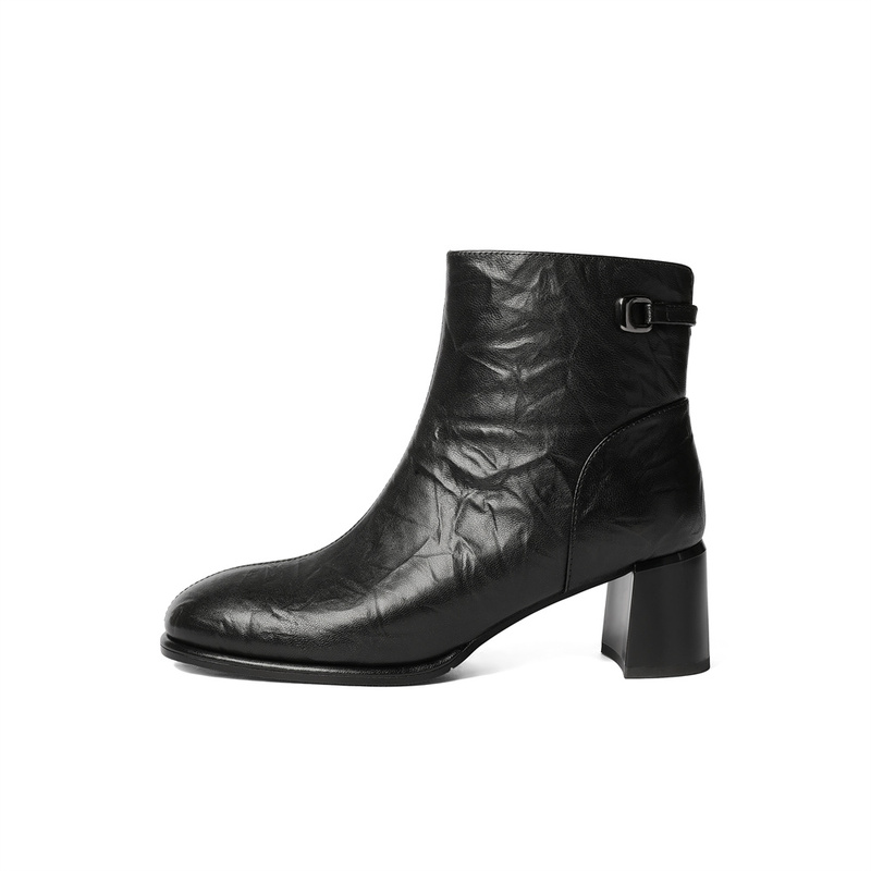 • 森达时装靴女2025冬季新款气质显瘦粗高跟短皮靴WP057DD5