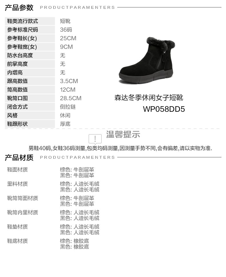 | 配跟:无 | 靴筒口围:28.5CM | 上市时间:2025年冬季 | 鞋类流行款式:短靴 | 鞋头款式:圆头 |