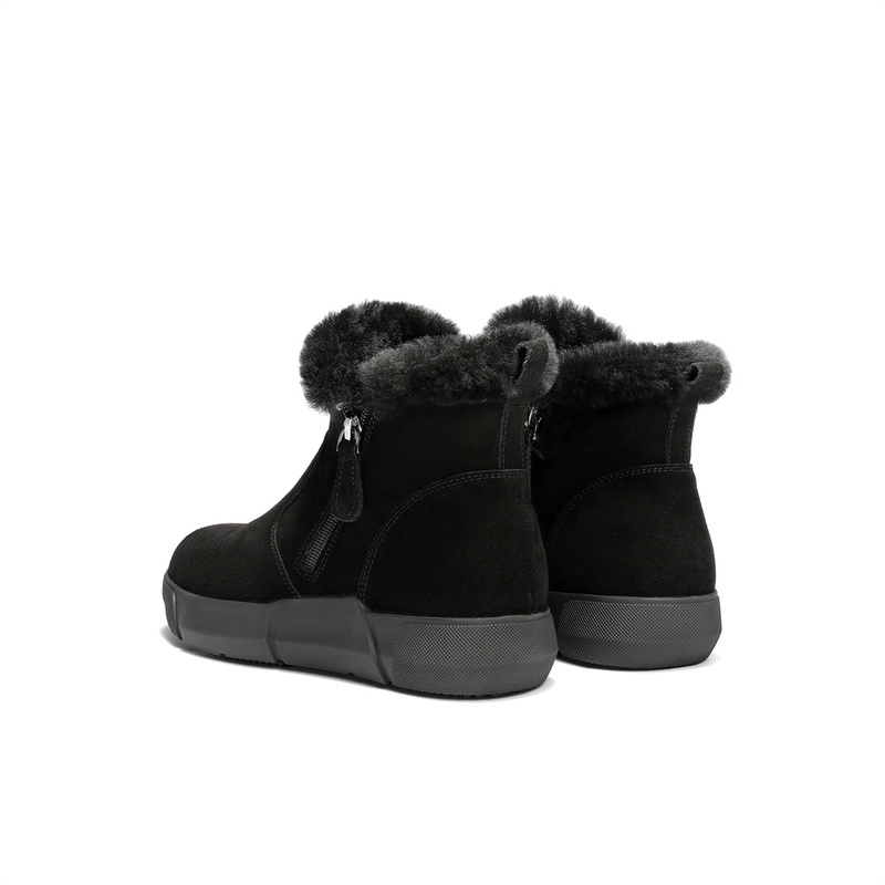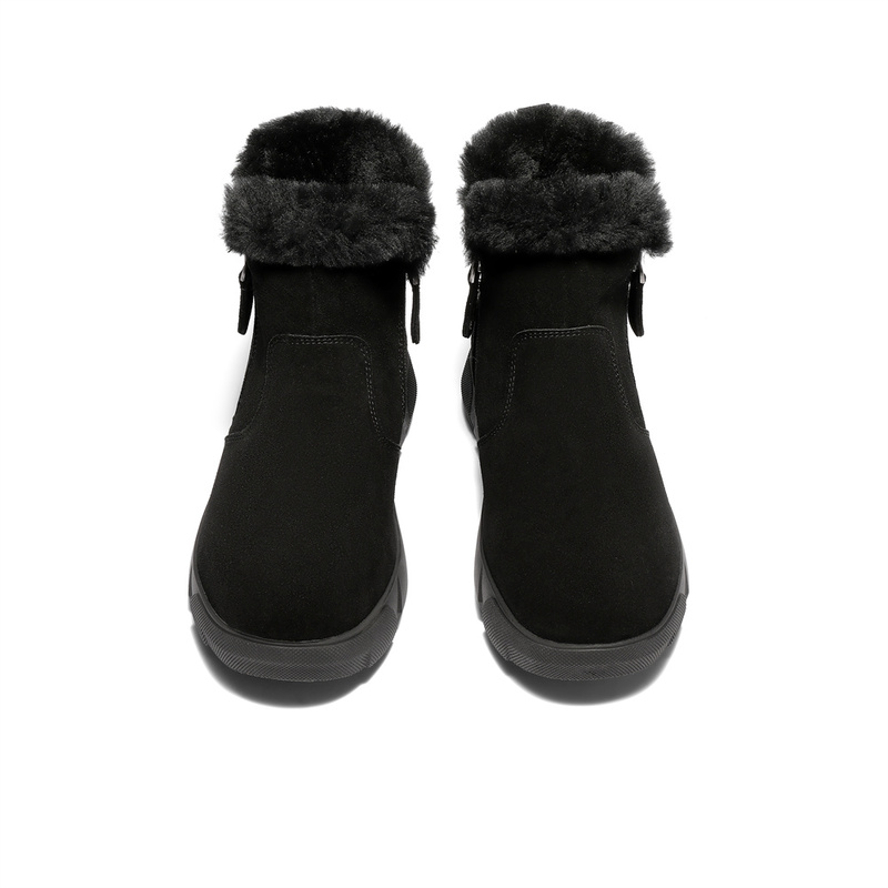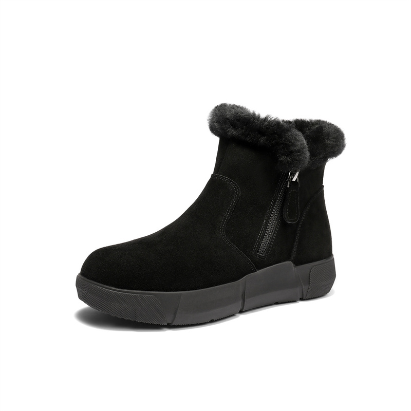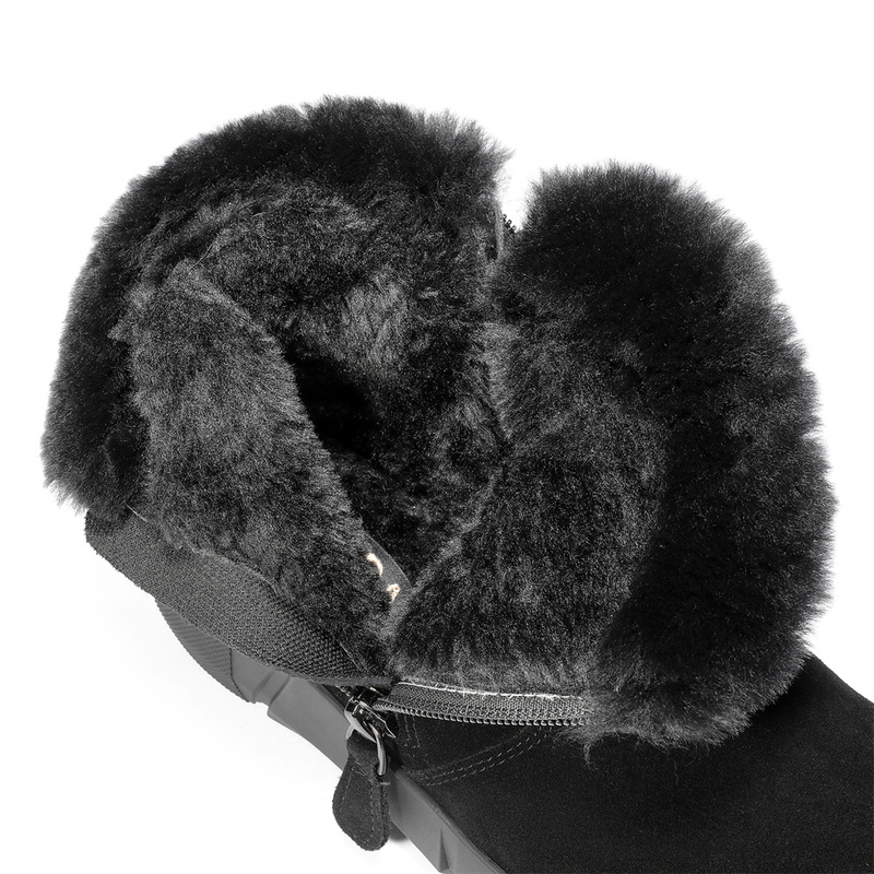 | 鞋底材质:橡胶底 | 靴筒内里材质:人造长毛绒 | 内增高:无 | 鞋面材质:牛剖层革 | 闭合方式:侧拉链 |