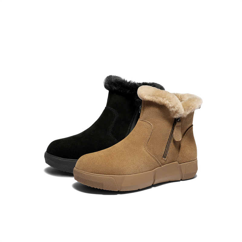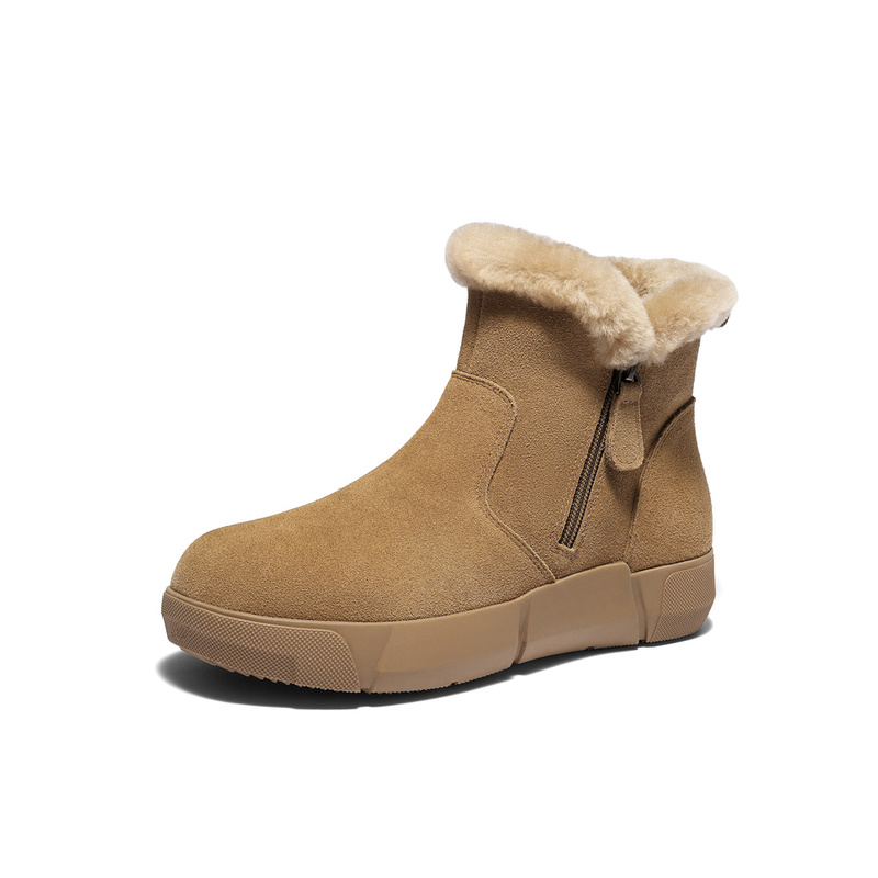 | 鞋底材质:橡胶底 | 靴筒内里材质:人造长毛绒 | 内增高:无 | 鞋面材质:牛剖层革 | 闭合方式:侧拉链 |