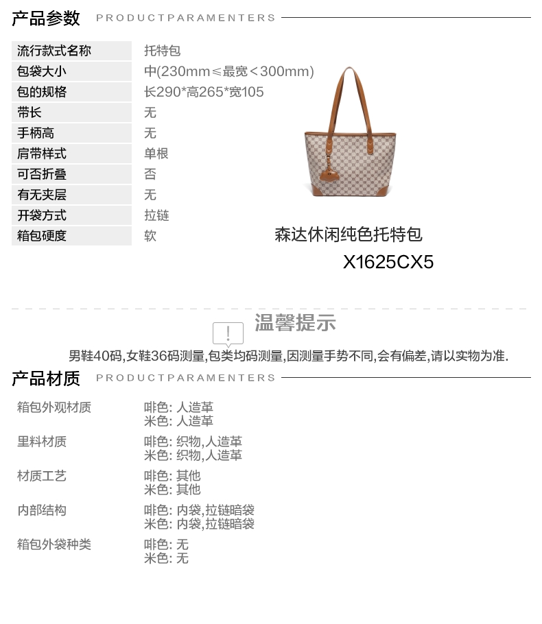 | 色系:咖啡色 | 适用场景:日常 | 开袋方式:拉链 | 性别:女子 | 是否防水:否 |