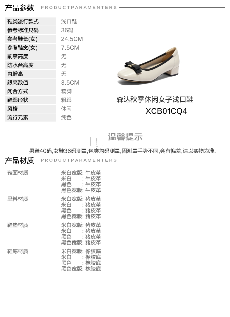 | 皮质特征:牛皮革 | 前掌高度:无 | 防水台高度:无 | 鞋类流行款式:浅口鞋 |