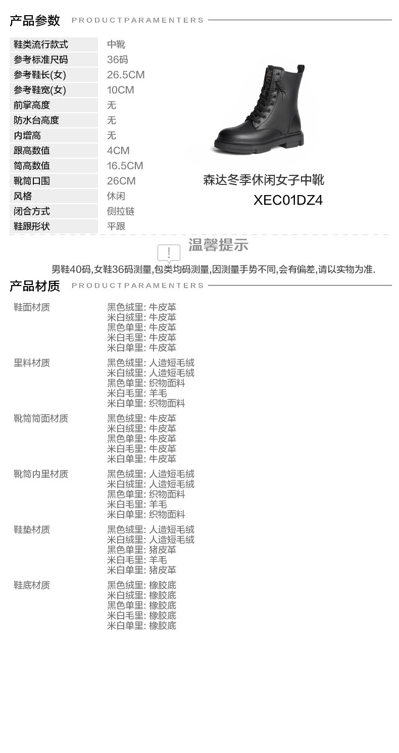 | 风格分类:马丁靴 | 上市时间:2024年冬季 | 鞋类流行款式:中靴 | 鞋头款式:圆头 | 跟高范围:中跟鞋(3-5CM) |