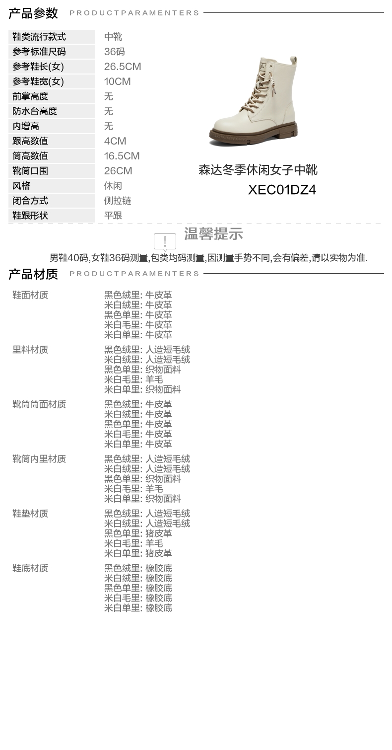 | 风格分类:马丁靴 | 上市时间:2024年冬季 | 鞋类流行款式:中靴 | 鞋头款式:圆头 | 跟高范围:中跟鞋(3-5CM) |