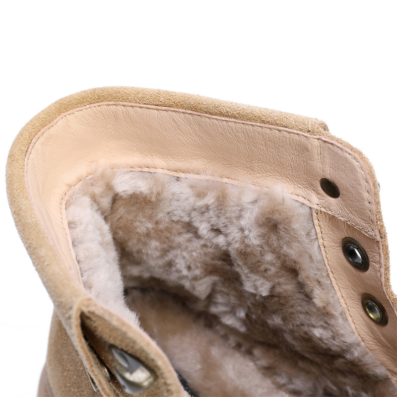 | 鞋底材质:橡胶底 | 靴筒内里材质:羊毛 | 内增高:无 | 鞋面材质:牛剖层皮革 | 闭合方式:系带 |