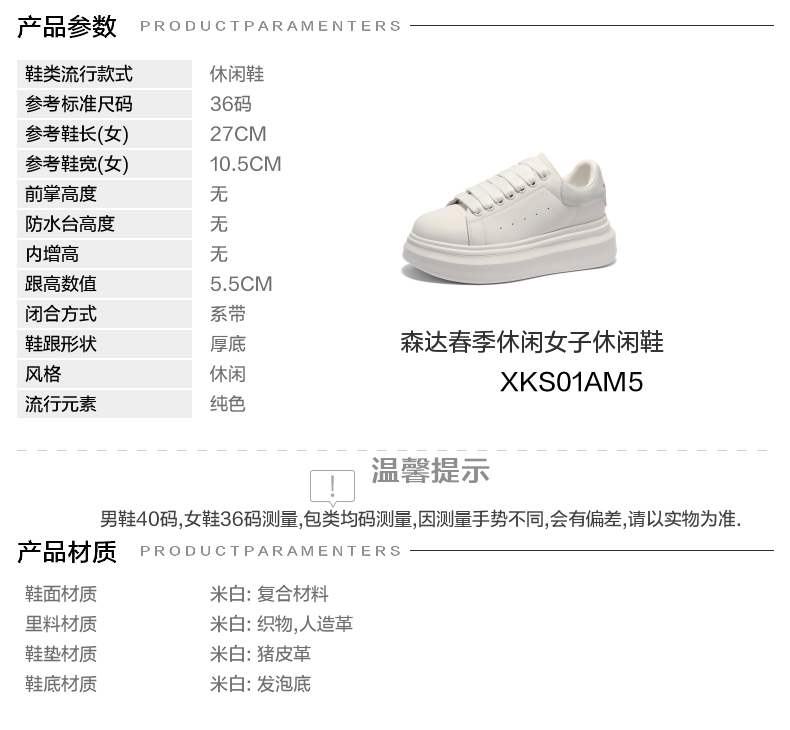 | 上市时间:2025年春季 | 生产/经销/进口厂家:江苏新森达鞋业有限公司 | 鞋类流行款式:休闲鞋 | 鞋头款式:圆头 | 执行标准:休闲鞋 QB/T2955-2017 |