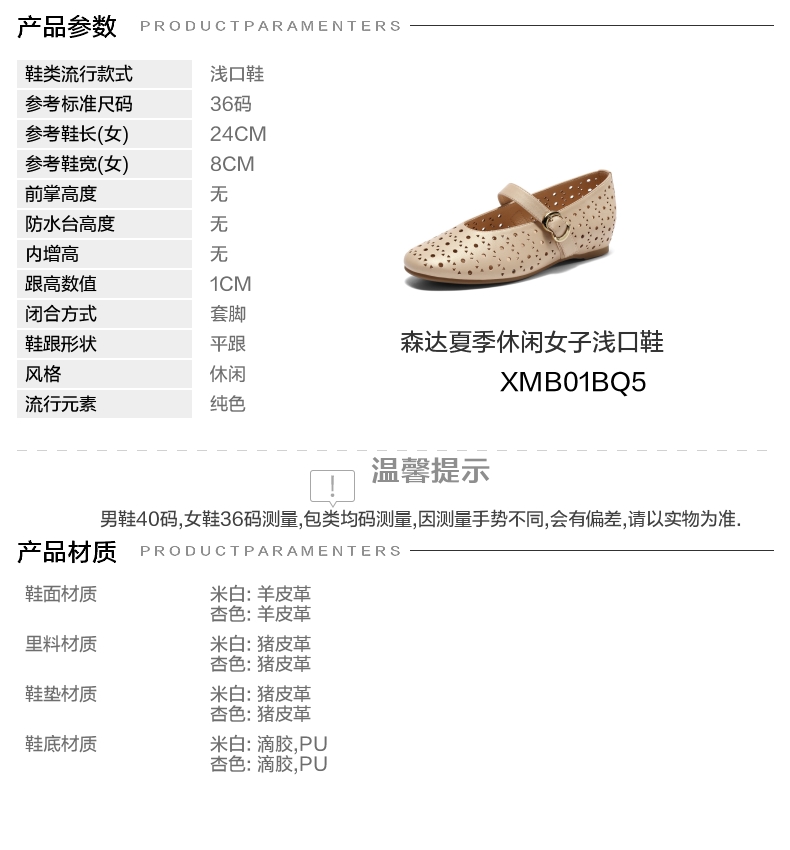 | 生产/经销/进口厂家:江苏新森达鞋业有限公司 | 鞋类流行款式:浅口鞋 | 鞋头款式:圆头 | 执行标准:舒适上班鞋 Q/320925XSD 001-2023 | 跟高范围:低跟鞋(小于3CM) |