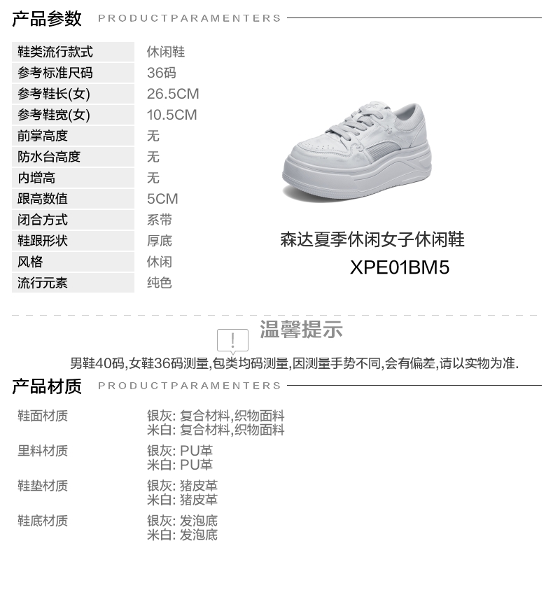 | 鞋跟形状:厚底 | 参考鞋长(女):26.5CM | 流行元素:纯色 | 参考鞋宽(女):10.5CM | 风格:休闲 |