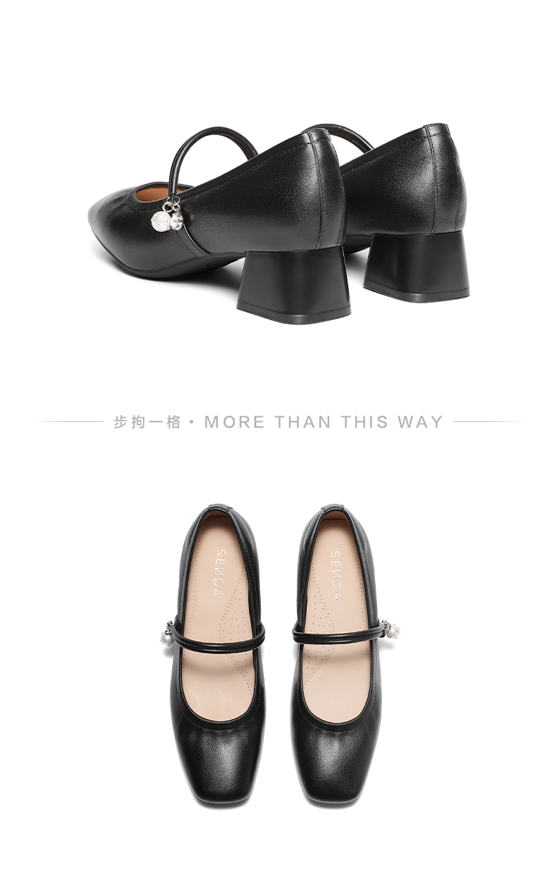 | 鞋头款式:方头 | 鞋底材质:滴胶 | 鞋面图案:纯色 | 内增高:无 | 鞋跟形状:粗跟 |