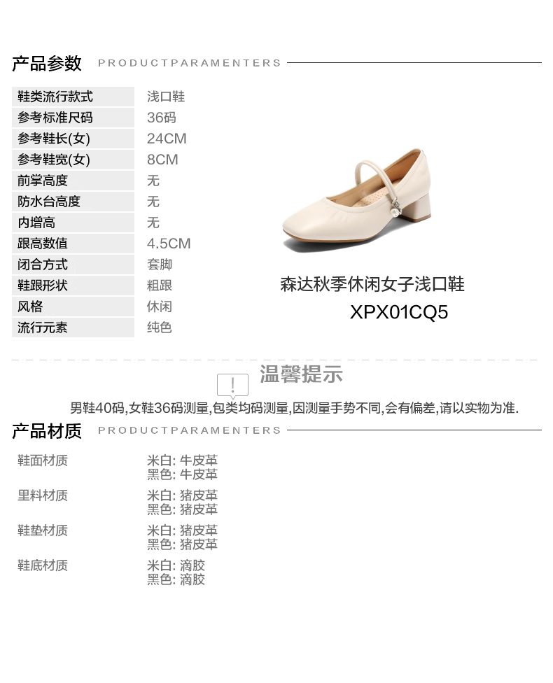 | 皮质特征:头层皮 | 前掌高度:无 | 防水台高度:无 | 鞋类流行款式:浅口鞋 |