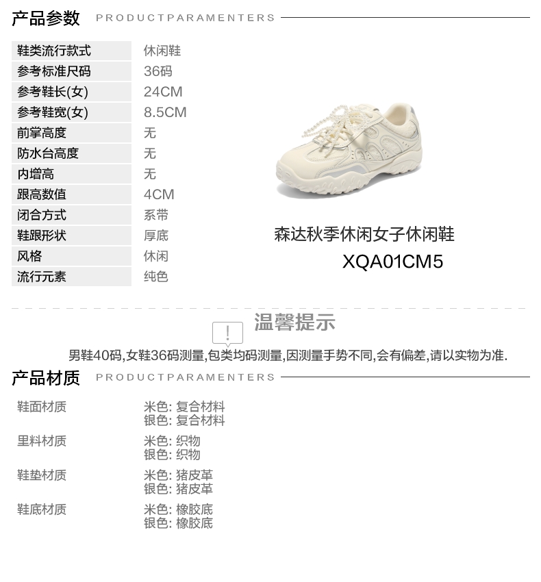 | 色系:米色 | 跟高数值:4CM | 性别:女子 | 里料材质:织物 | 制鞋工艺:胶贴皮鞋 |