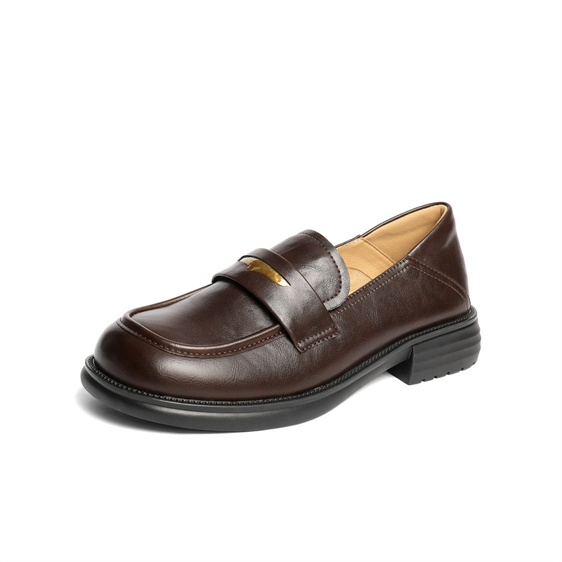 | 色系:咖啡色 | 跟高数值:3CM | 性别:女子 | 里料材质:猪皮革 | 制鞋工艺:胶贴皮鞋 |