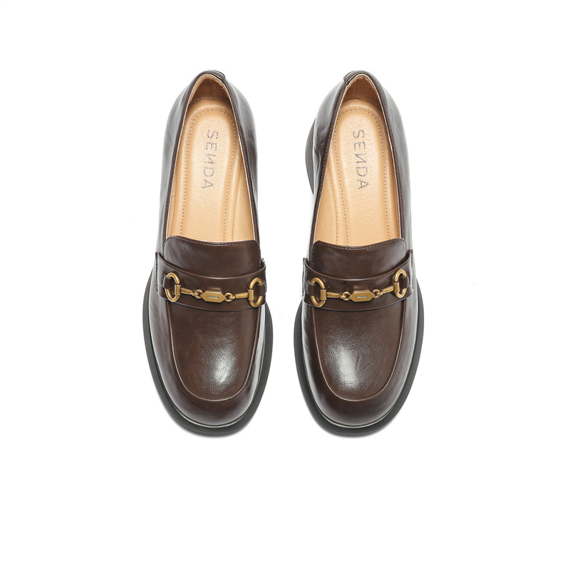 | 色系:咖啡色 | 跟高数值:4.5CM | 性别:女子 | 里料材质:猪皮革 | 制鞋工艺:胶贴皮鞋 |