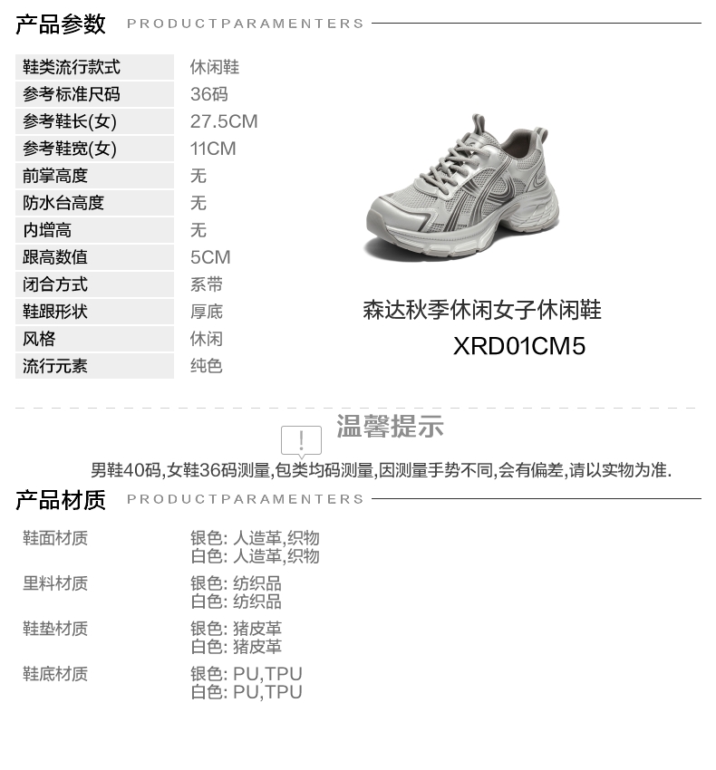 | 鞋跟形状:厚底 | 参考鞋长(女):27.5CM | 流行元素:纯色 | 参考鞋宽(女):11CM | 风格:休闲 |