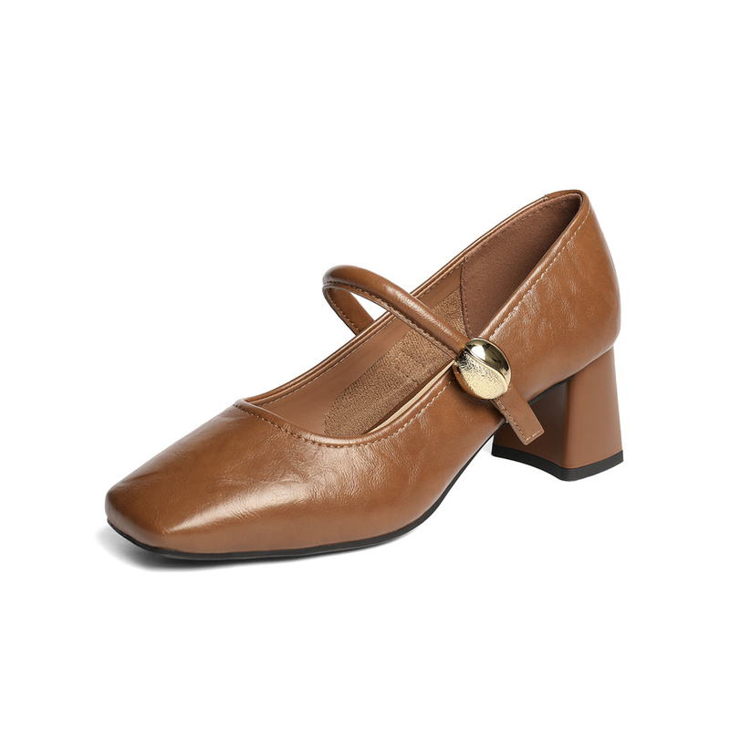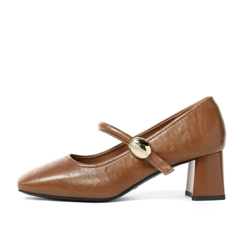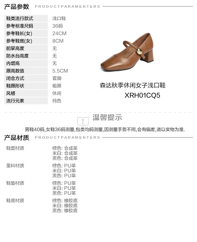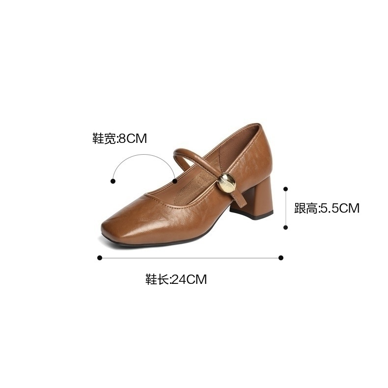 | 鞋头款式:方头 | 鞋底材质:橡胶底 | 鞋面图案:纯色 | 内增高:无 | 鞋跟形状:粗跟 |