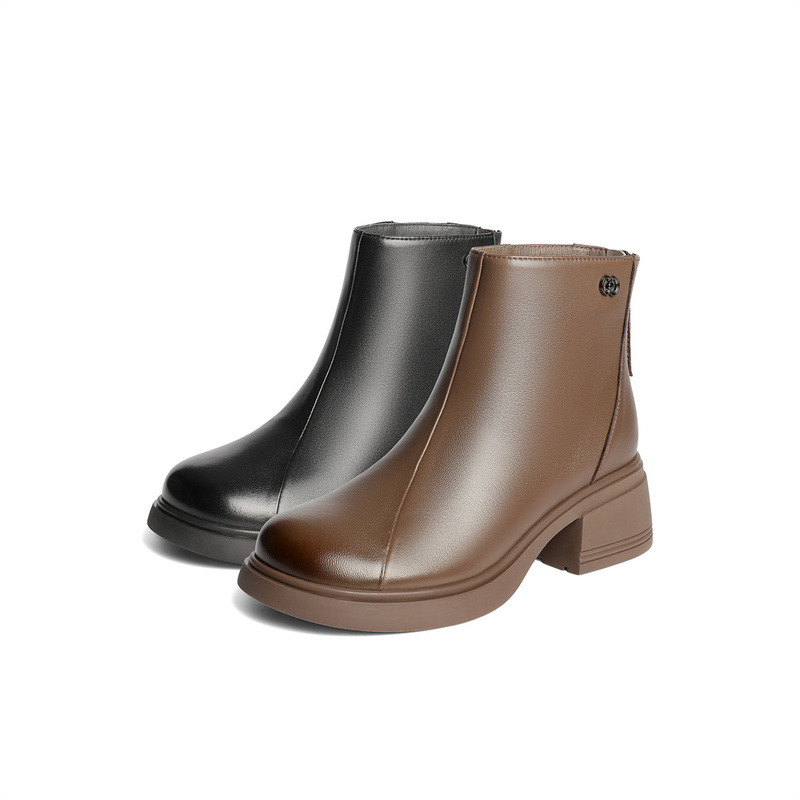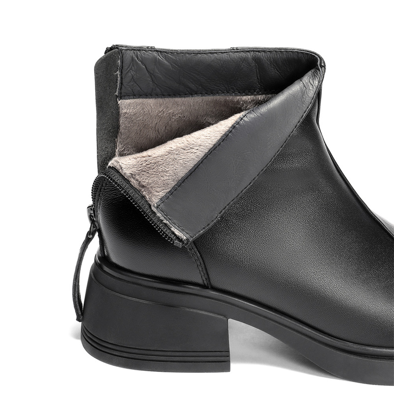 | 鞋底材质:橡胶底 | 靴筒内里材质:人造短毛绒 | 内增高:无 | 鞋面材质:羊皮革 | 闭合方式:后拉链 |