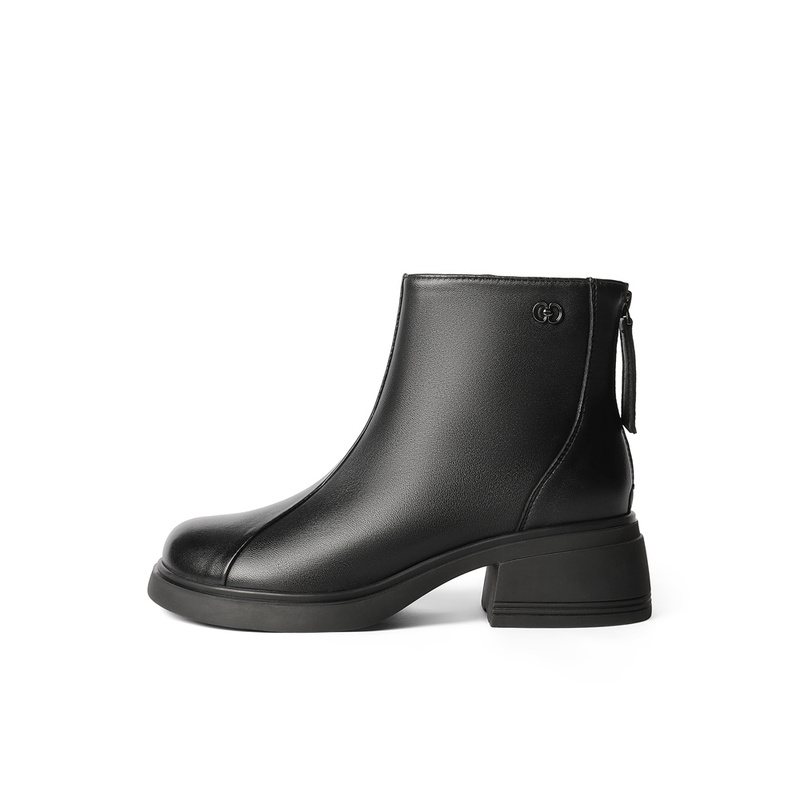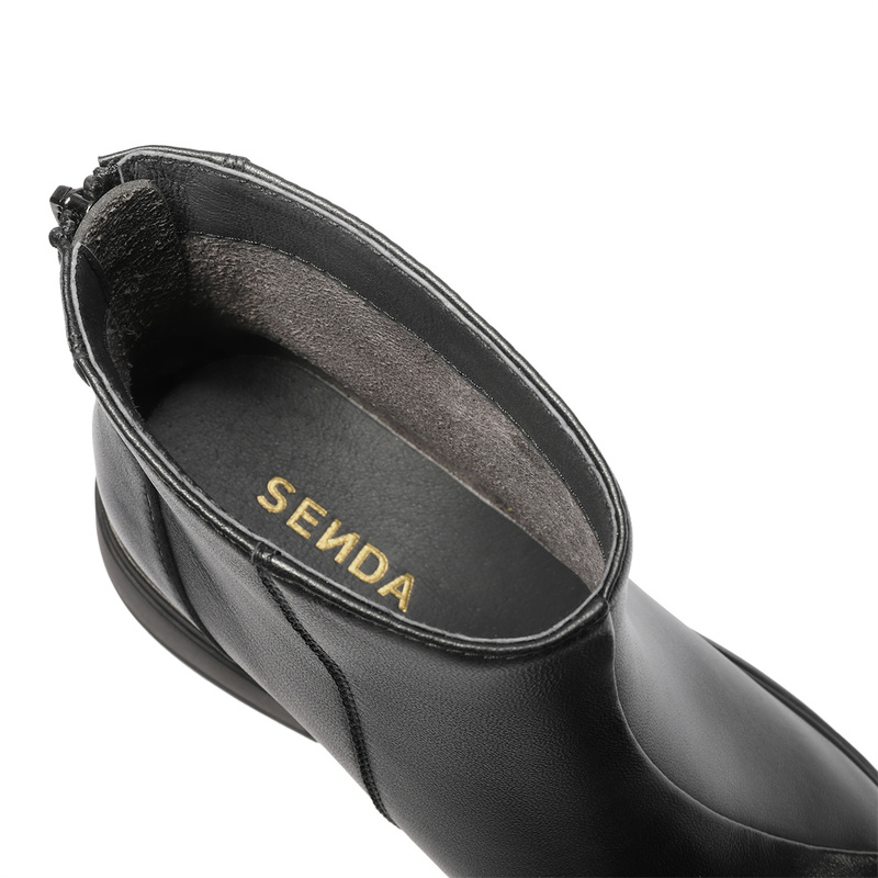 | 鞋底材质:橡胶底 | 靴筒内里材质:猪皮革织物面料 | 内增高:无 | 鞋面材质:羊皮革 | 闭合方式:后拉链 |