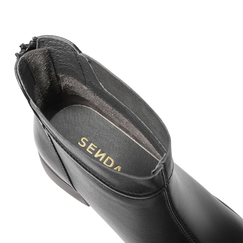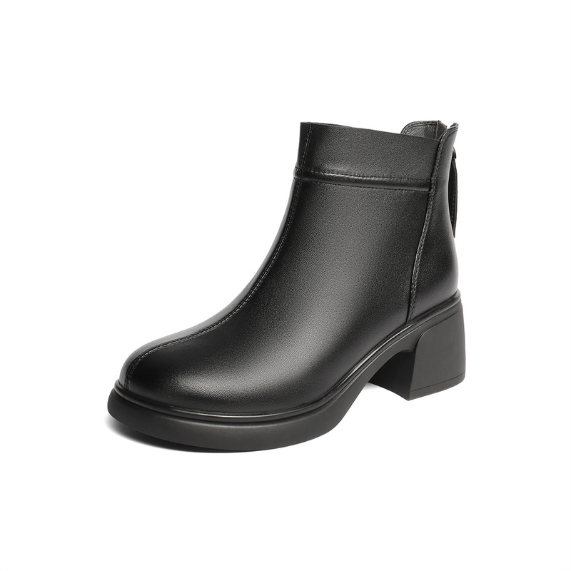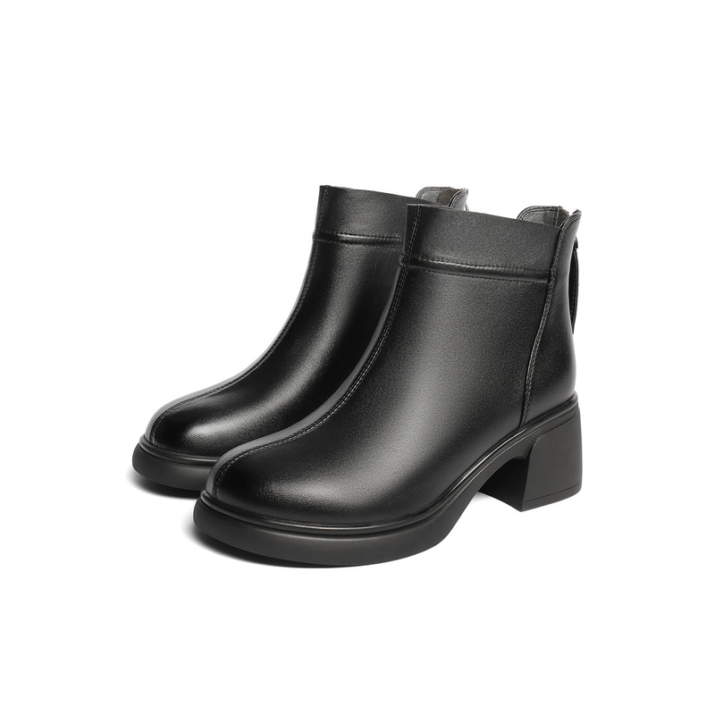 | 鞋底材质:橡胶底 | 靴筒内里材质:猪皮革织物面料 | 内增高:无 | 鞋面材质:羊皮革 | 闭合方式:后拉链 |