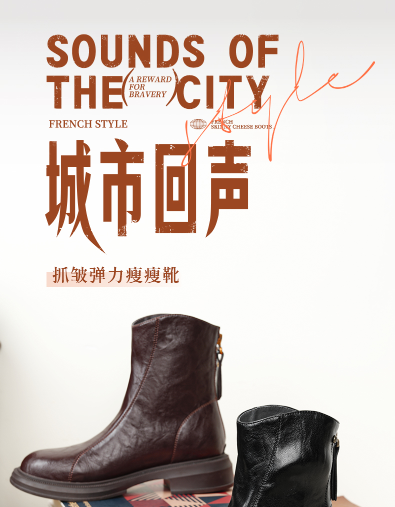 | 鞋底材质:橡胶底 | 靴筒内里材质:猪皮革织物面料 | 内增高:无 | 鞋面材质:人造革 | 闭合方式:后拉链 |