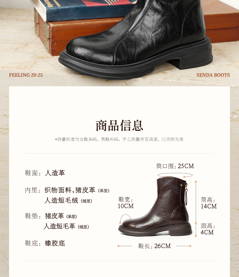 | 配跟:无 | 靴筒口围:25CM | 上市时间:2025年冬季 | 鞋类流行款式:中靴 | 鞋头款式:圆头 |