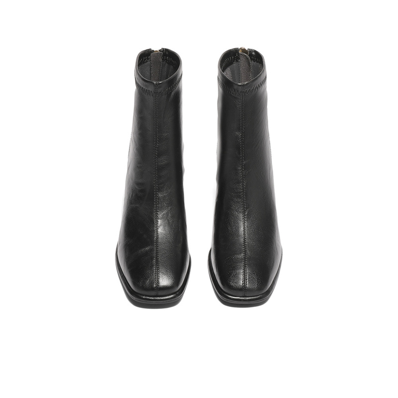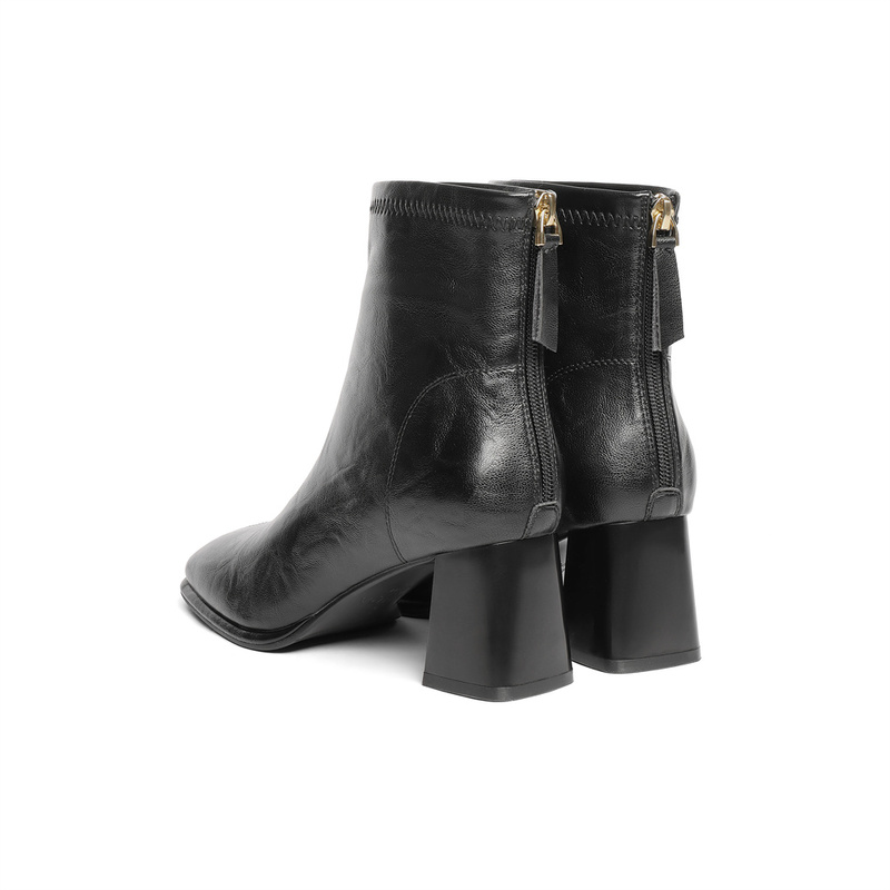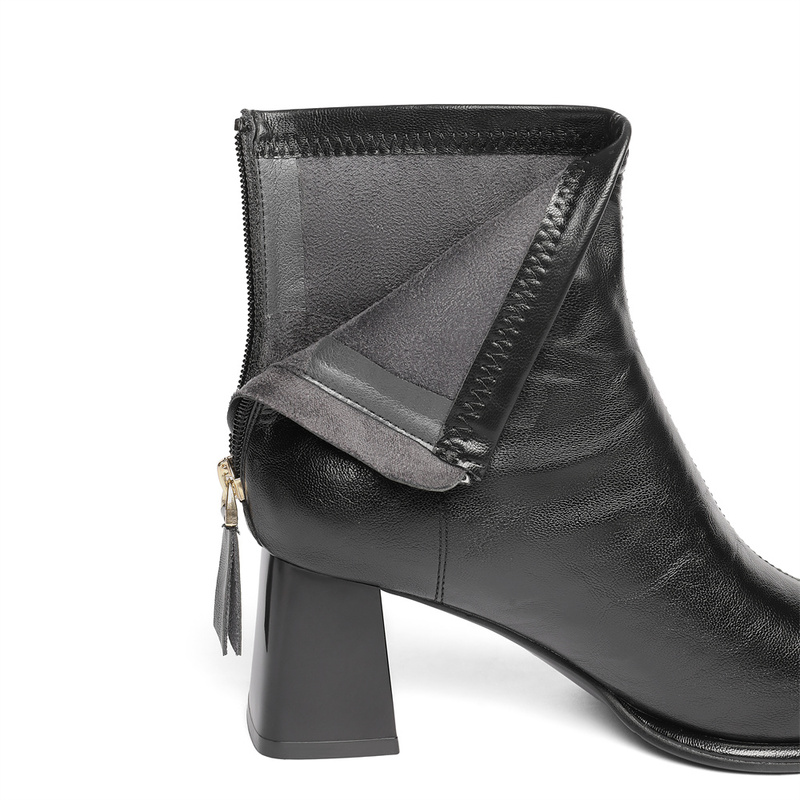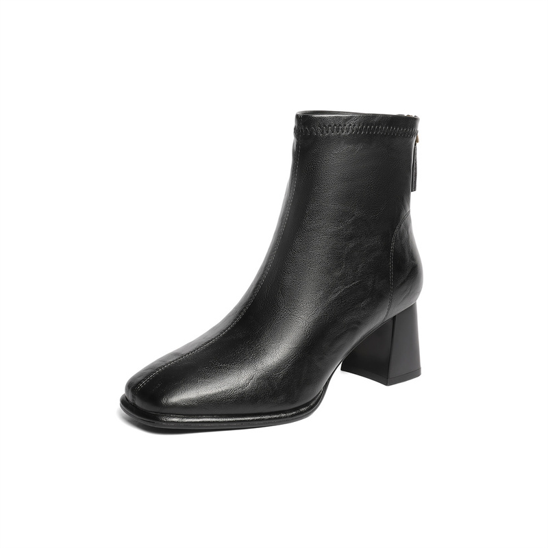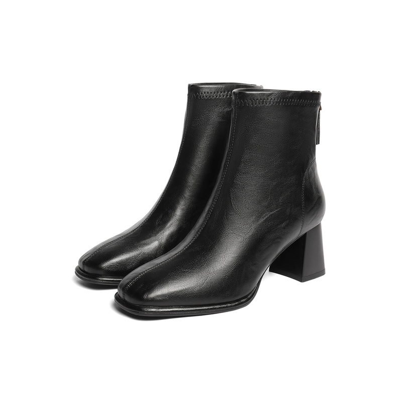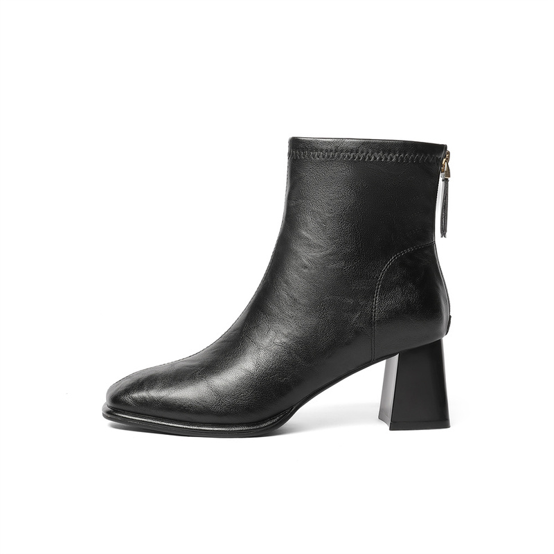 | 鞋底材质:橡胶底 | 靴筒内里材质:猪皮革织物面料 | 内增高:无 | 鞋面材质:人造革 | 闭合方式:后拉链 |