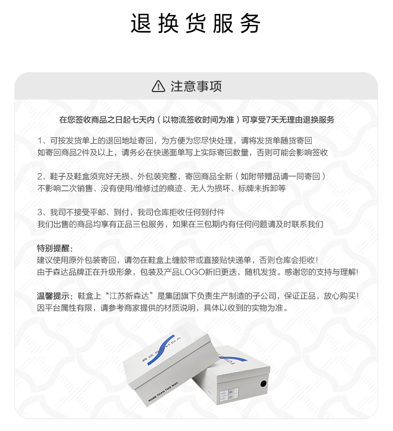 SENDA(森达),品牌成立于1977年,拥有40年发展史,秉承舒适的制鞋理念,从用料到工艺都经过严格质量把控。男鞋以舒适质感著称,覆盖商务正装、商务休闲、时尚休闲三大系列,适用不同场合的需求,同时开发摩克、加州等一系列功能性鞋履,行走体验;女鞋以款式优雅、穿着舒适为主要特征,依时尚潮流添加当季设计元素,每季推出时尚、休闲等系列鞋款,为都市白领提供不同场合的搭配需求。目前门店已覆盖近百座城市,数量达1800多家。