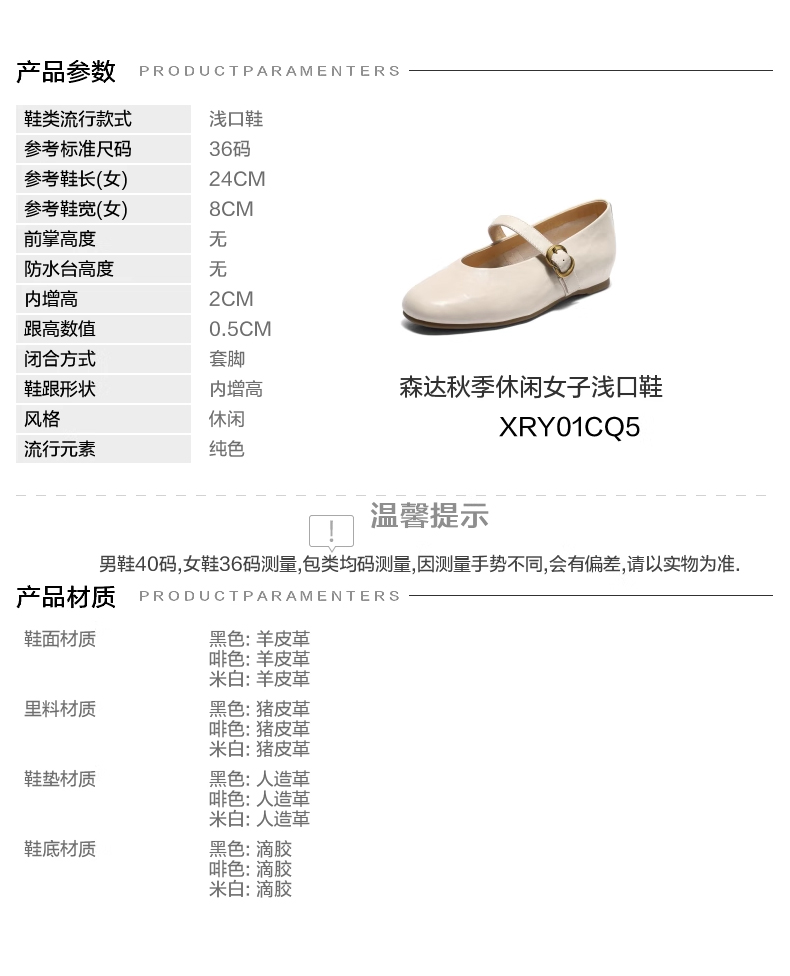 | 皮质特征:头层皮 | 前掌高度:无 | 防水台高度:无 | 鞋类流行款式:浅口鞋 |