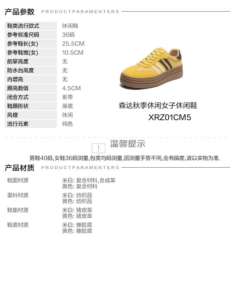| 鞋跟形状:厚底 | 参考鞋长(女):25.5CM | 流行元素:纯色 | 参考鞋宽(女):10.5CM | 风格:休闲 |