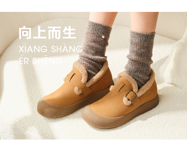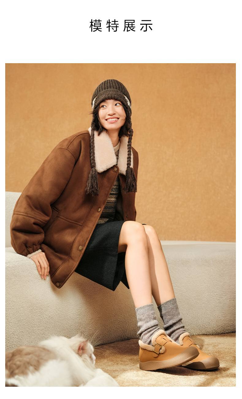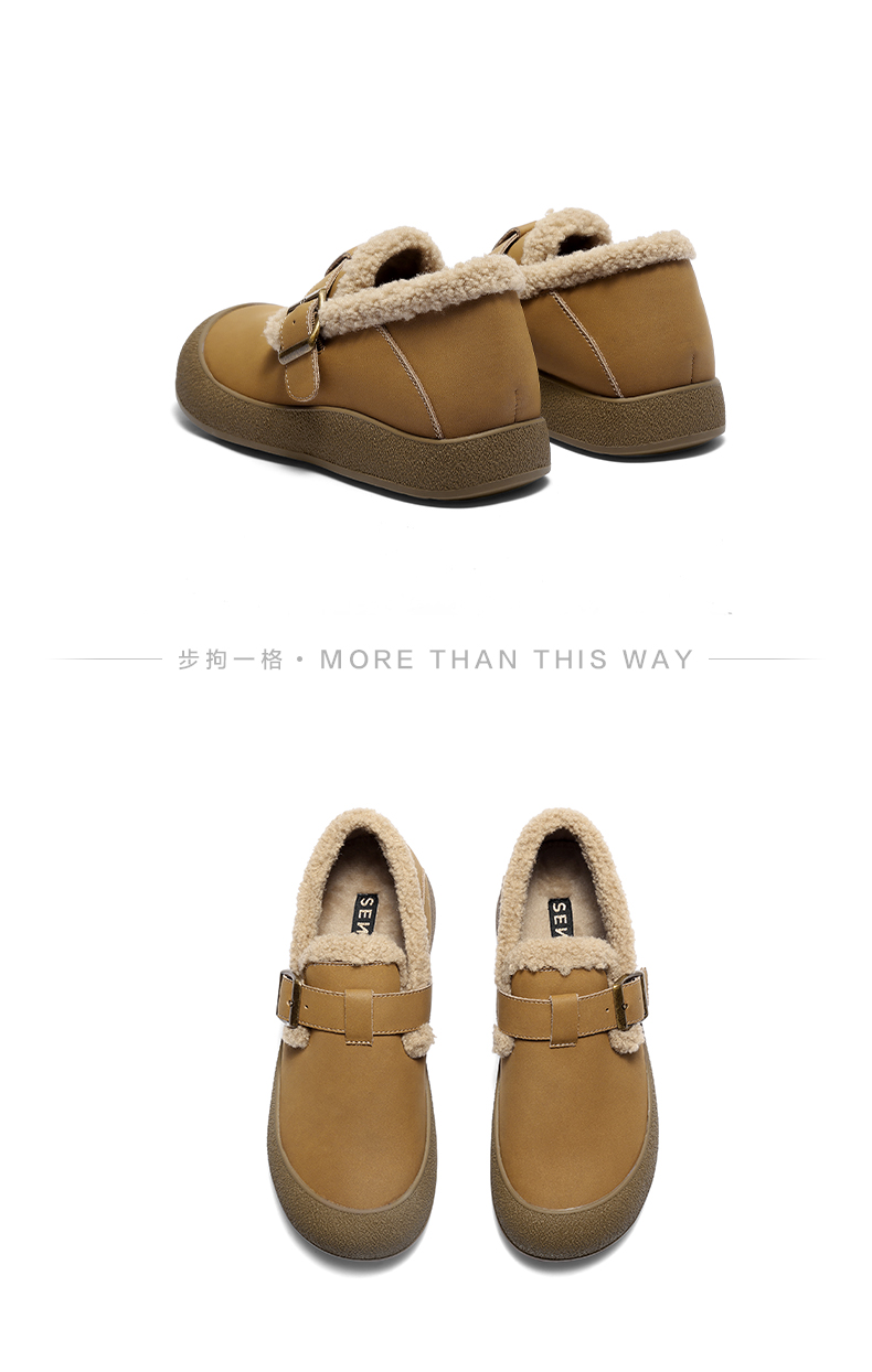 | 色系:卡其 | 跟高数值:2.5CM | 性别:女子 | 里料材质:人造长毛绒 | 制鞋工艺:胶贴皮鞋 |