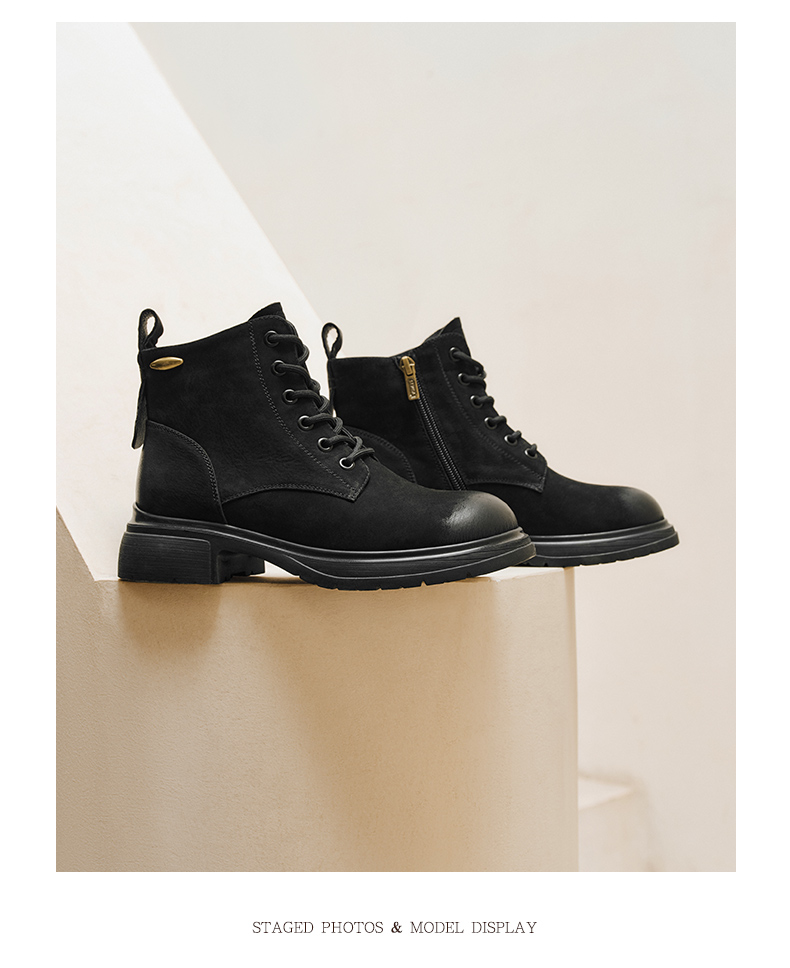 | 帮面材质:牛皮革 | 配跟:无 | 靴筒口围:25CM | 上市时间:2025年冬季 | 鞋类流行款式:短靴 |