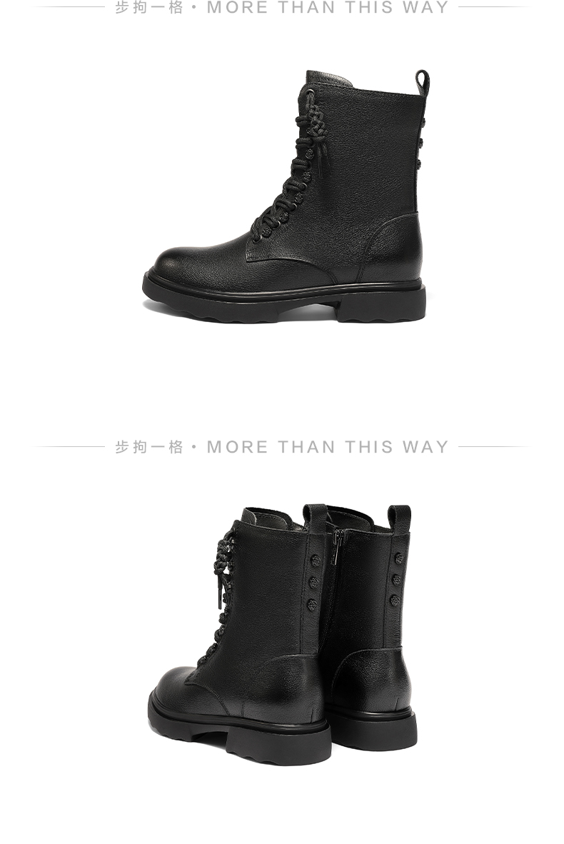 | 鞋底材质:橡胶底 | 靴筒内里材质:人造短毛绒 | 内增高:无 | 鞋面材质:牛皮革 | 闭合方式:侧拉链 |