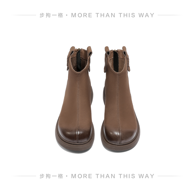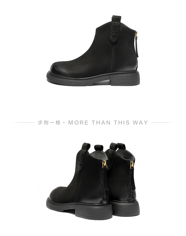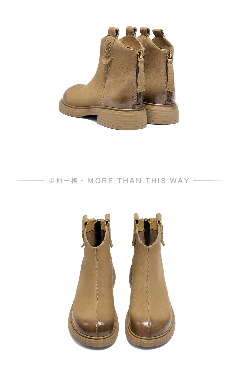 | 帮面材质:牛皮革 | 配跟:无 | 靴筒口围:28CM | 上市时间:2025年冬季 | 鞋类流行款式:短靴 |