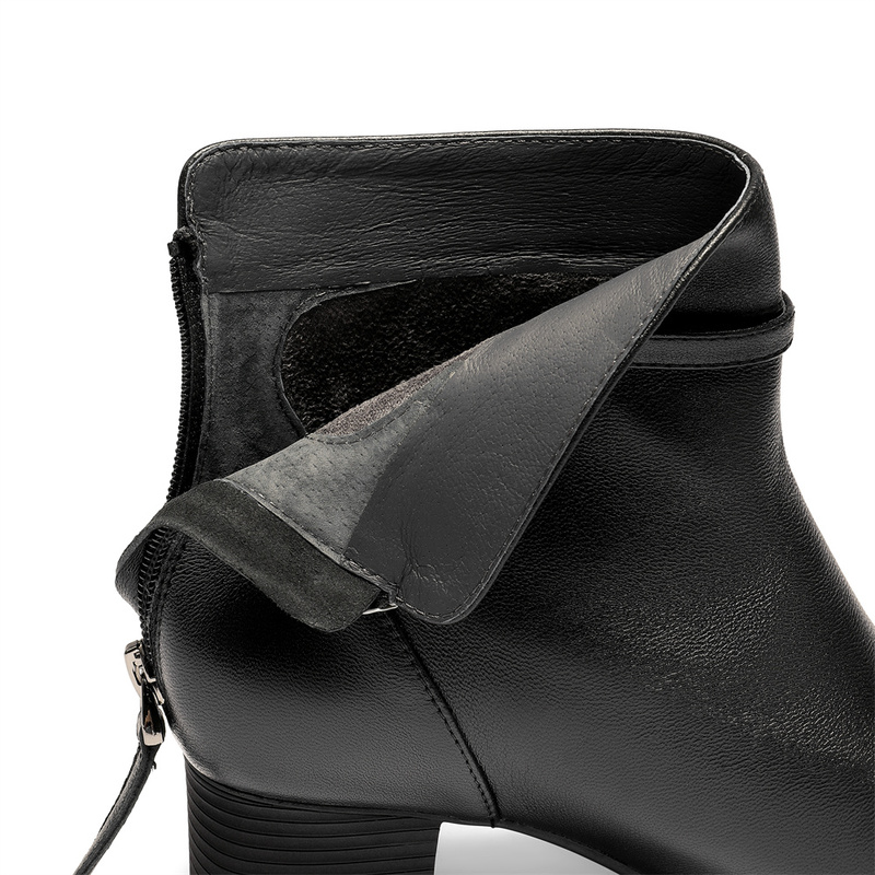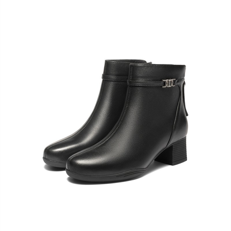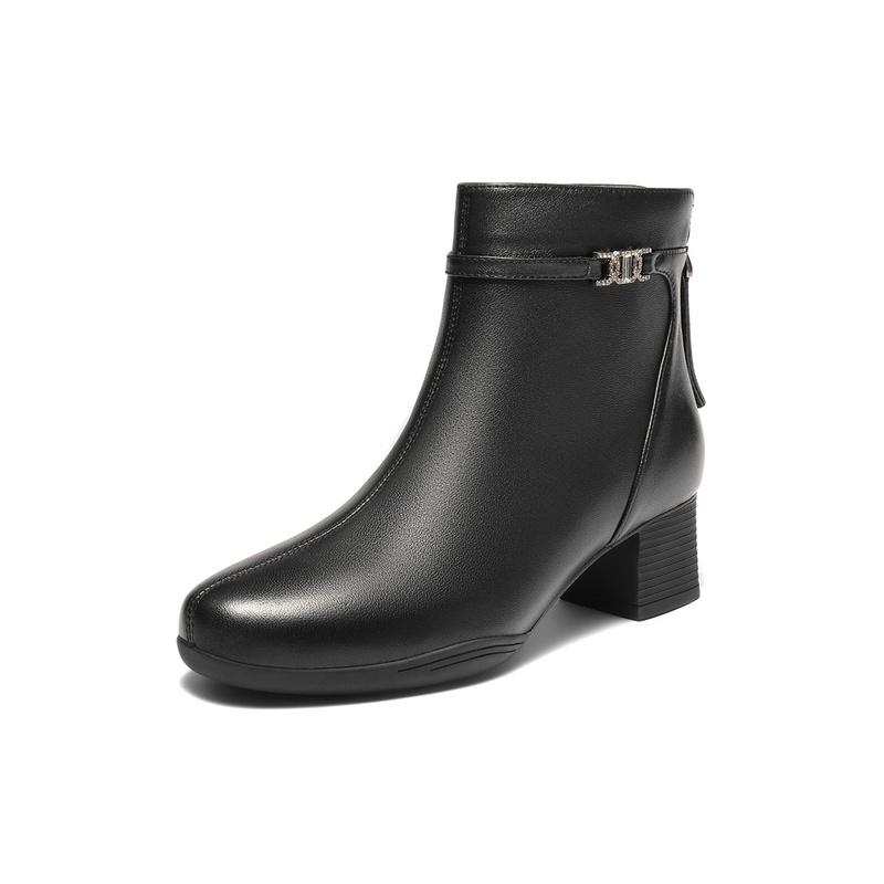 | 鞋底材质:橡胶底 | 靴筒内里材质:猪皮革织物面料 | 内增高:无 | 鞋面材质:羊皮革 | 闭合方式:后拉链 |