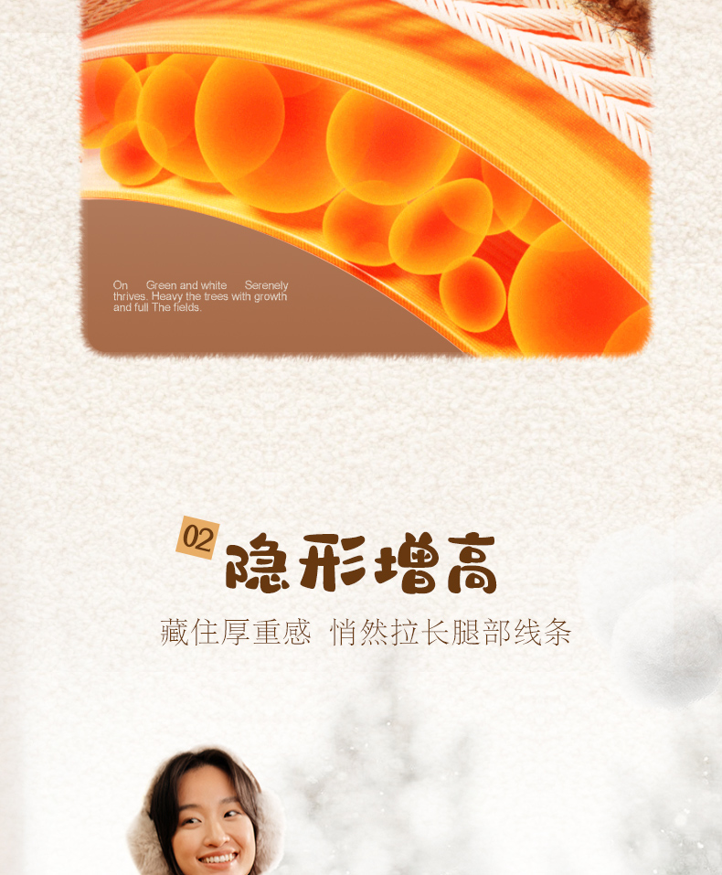 | 鞋垫材质:人造长毛绒 | 款式季节:冬季 | 前掌高度:无 | 皮质特征:二层皮 | 防水台高度:无 |