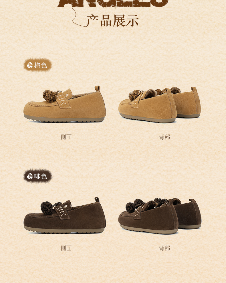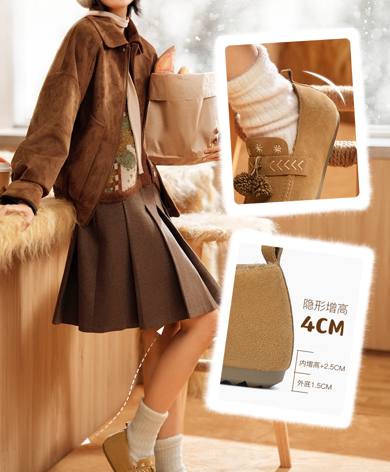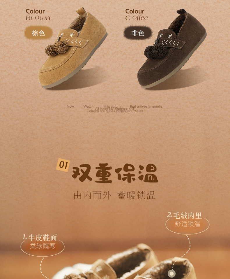 | 色系:棕色 | 跟高数值:1.5CM | 性别:女子 | 里料材质:人造长毛绒 | 制鞋工艺:胶贴皮鞋 |