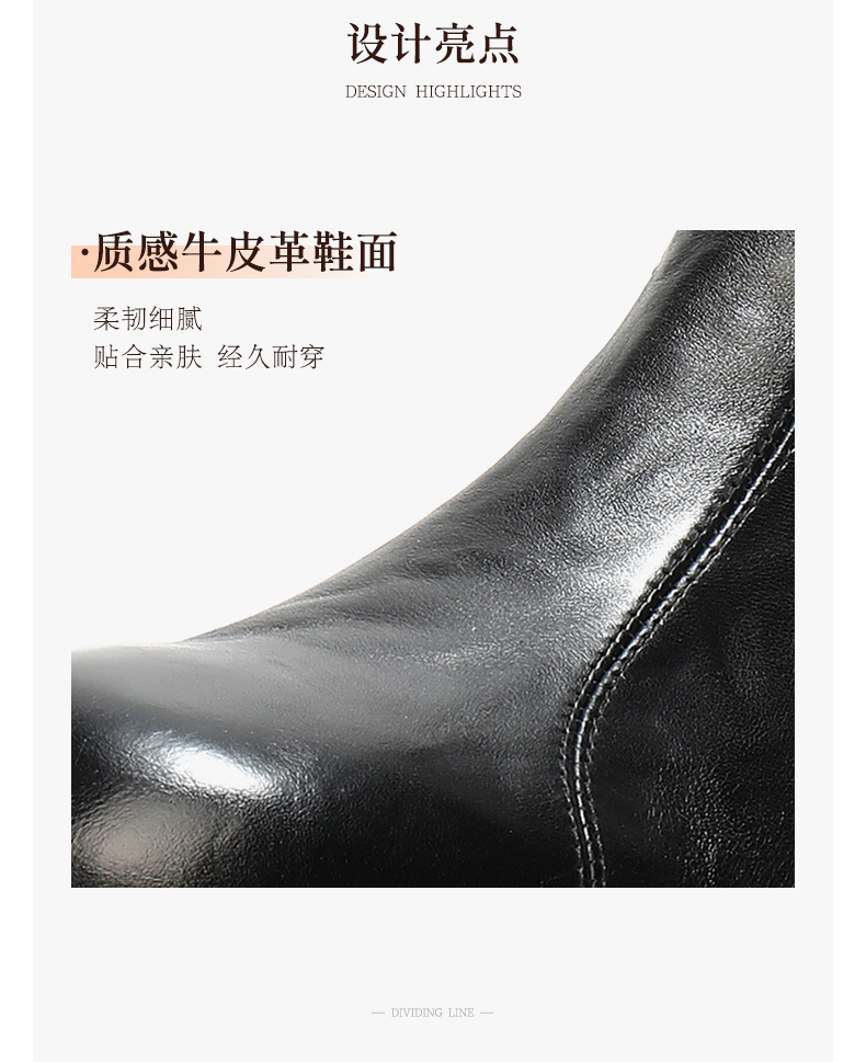 | 靴筒筒面材质:织物面料牛皮革 | 里料材质:猪皮革织物面料 | 制鞋工艺:胶贴皮鞋 | 鞋垫材质:猪皮革 | 款式季节:冬季 |