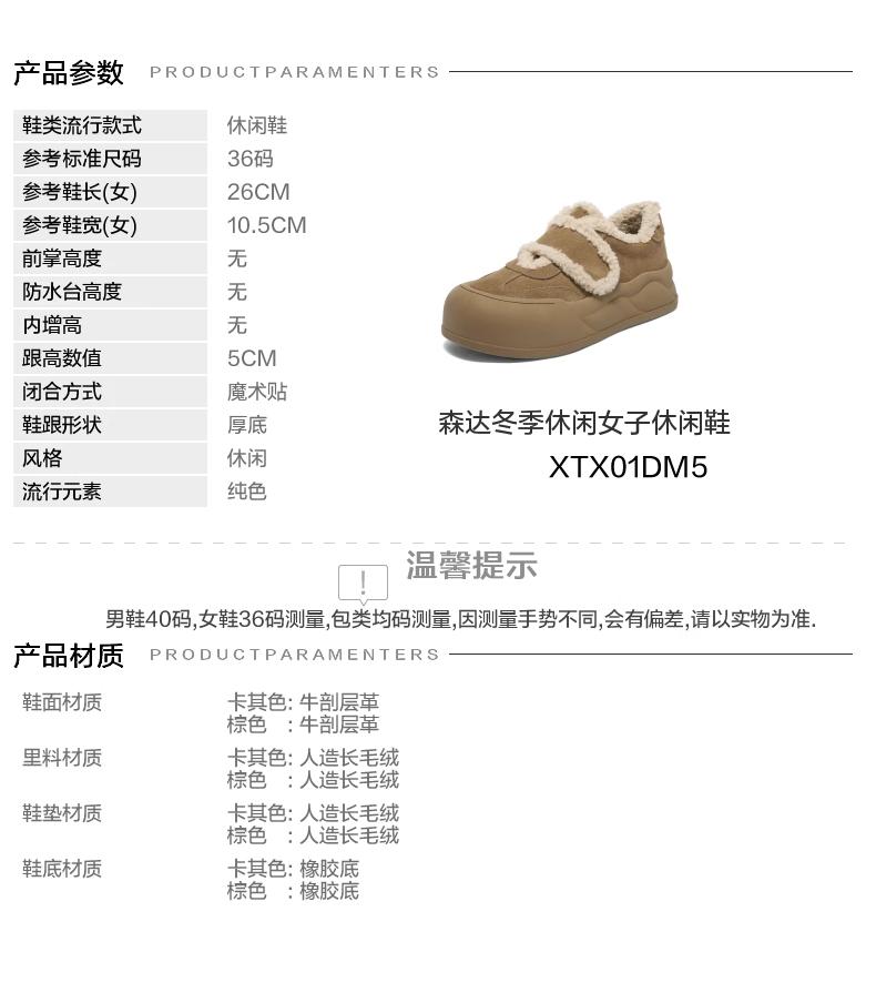 | 色系:棕色 | 跟高数值:5CM | 性别:女子 | 里料材质:人造长毛绒 | 制鞋工艺:胶贴皮鞋 |