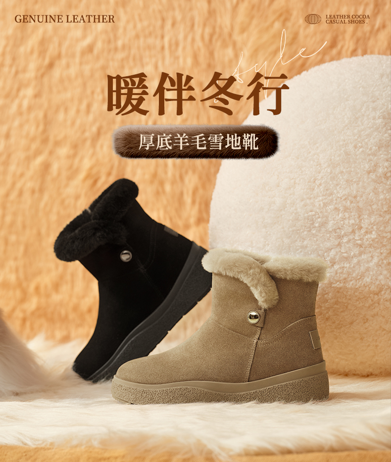 | 靴筒筒面材质:牛剖层革 | 里料材质:羊毛 | 制鞋工艺:胶贴皮鞋 | 鞋垫材质:羊毛 | 款式季节:冬季 |