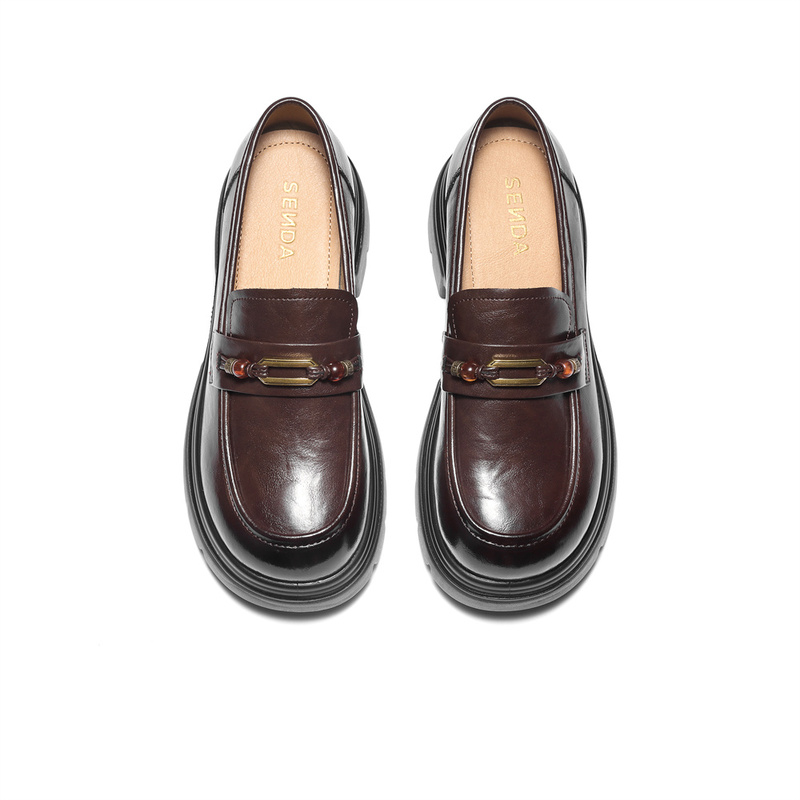 | 色系:棕色 | 跟高数值:5CM | 性别:女子 | 里料材质:超纤猪皮革织物 | 制鞋工艺:胶贴皮鞋 |