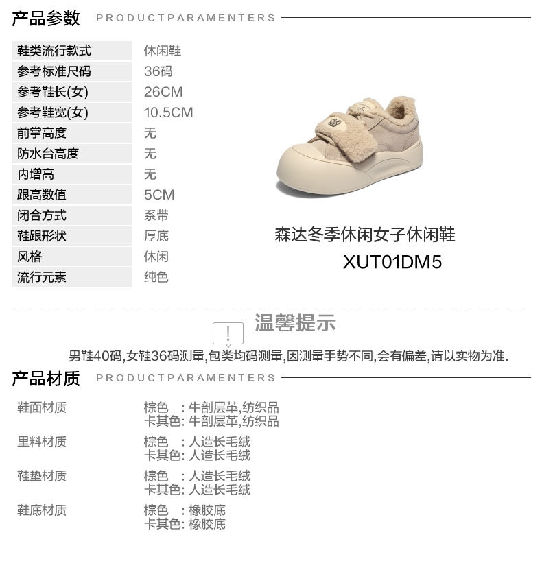 | 色系:卡其 | 跟高数值:5CM | 性别:女子 | 里料材质:人造长毛绒 | 制鞋工艺:胶贴皮鞋 |