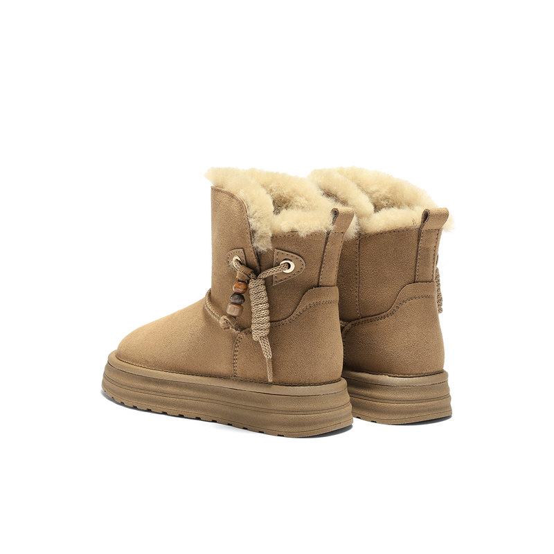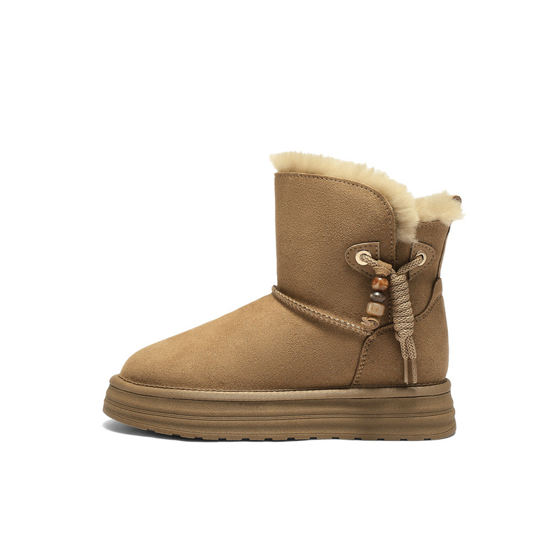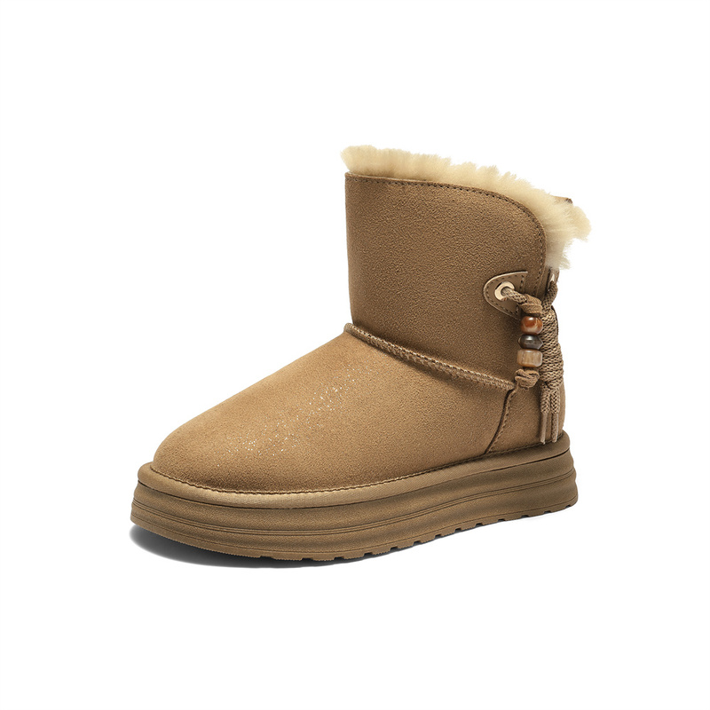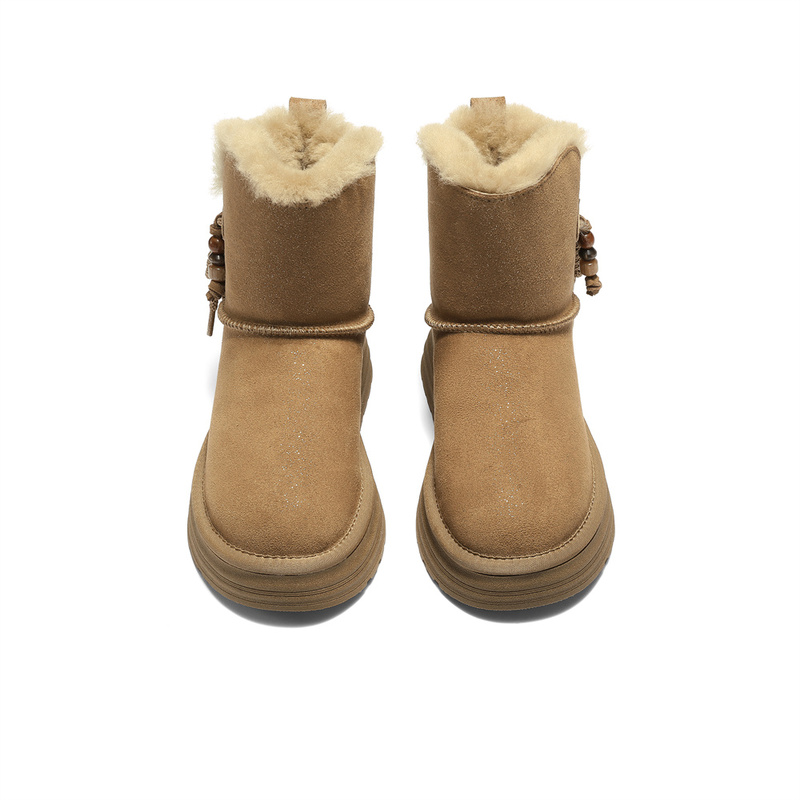 | 靴筒筒面材质:复合材料 | 里料材质:人造长毛绒羊毛 | 制鞋工艺:胶贴皮鞋 | 鞋垫材质:人造长毛绒 | 款式季节:冬季 |