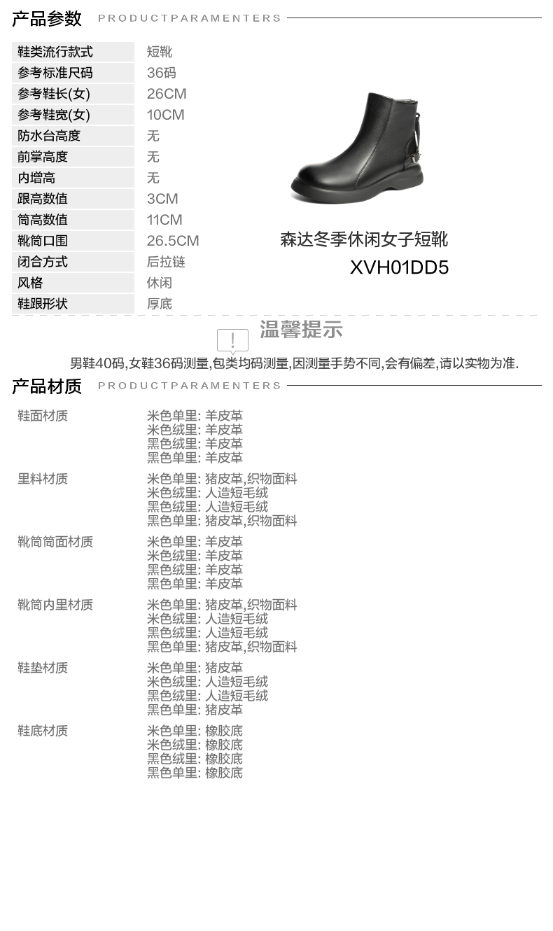 | 配跟:无 | 靴筒口围:26.5CM | 上市时间:2025年冬季 | 鞋类流行款式:短靴 | 鞋头款式:圆头 |