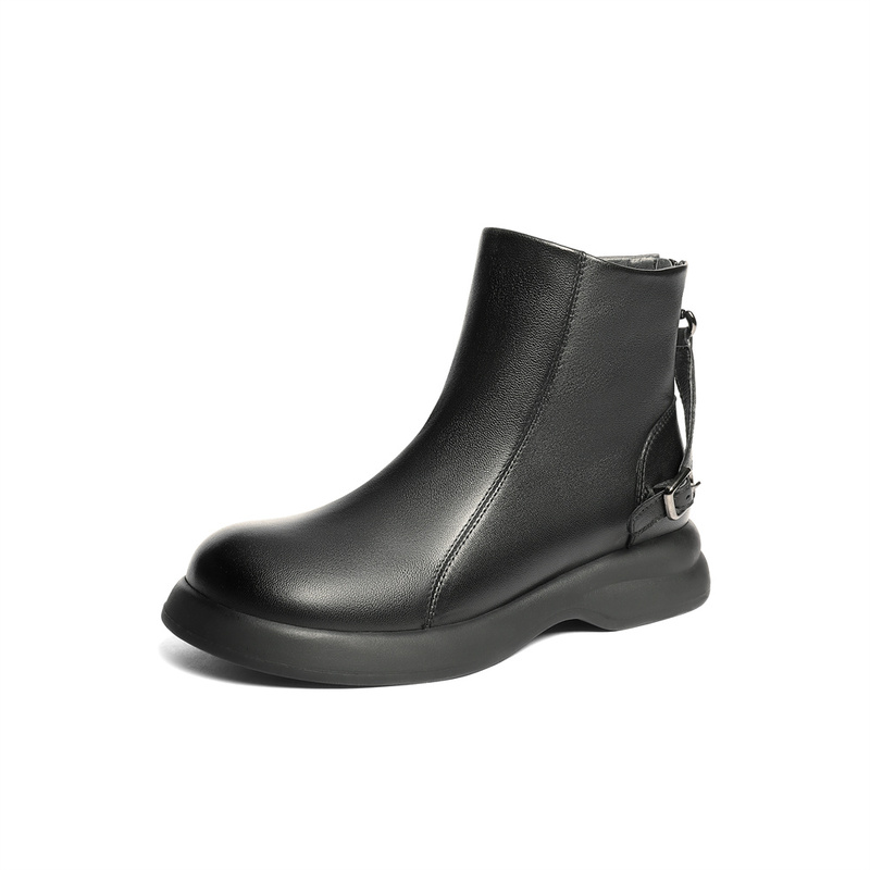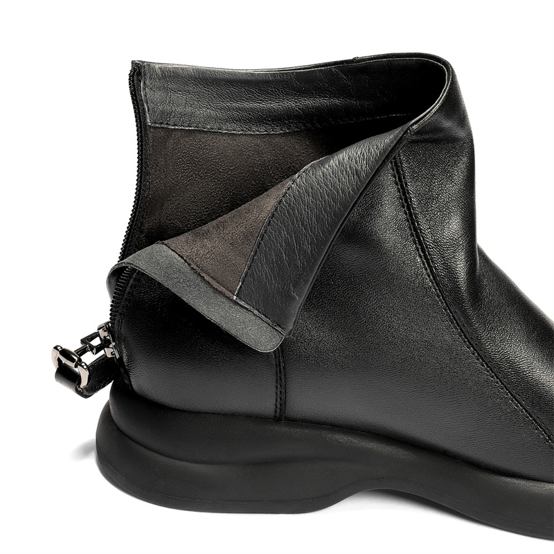 | 鞋底材质:橡胶底 | 靴筒内里材质:织物面料猪皮革 | 内增高:无 | 鞋面材质:羊皮革 | 闭合方式:后拉链 |
