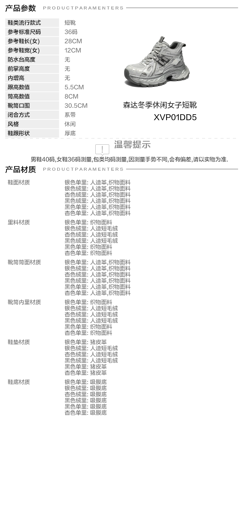 | 配跟:无 | 靴筒口围:30.5CM | 上市时间:2025年冬季 | 鞋类流行款式:短靴 | 鞋头款式:圆头 |