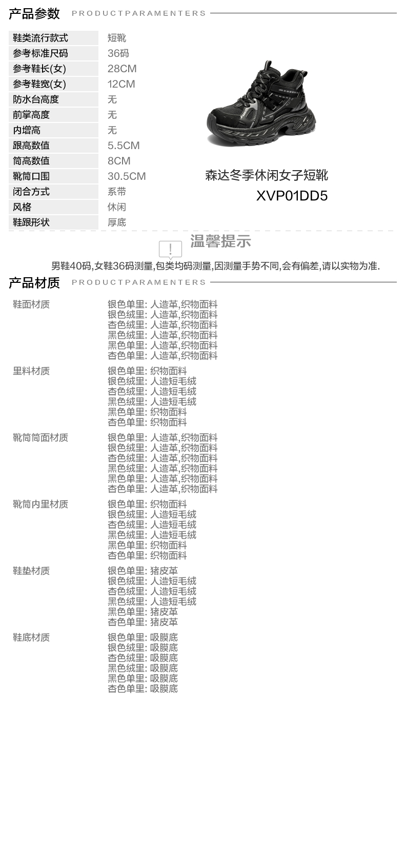 | 配跟:无 | 靴筒口围:30.5CM | 上市时间:2025年冬季 | 鞋类流行款式:短靴 | 鞋头款式:圆头 |