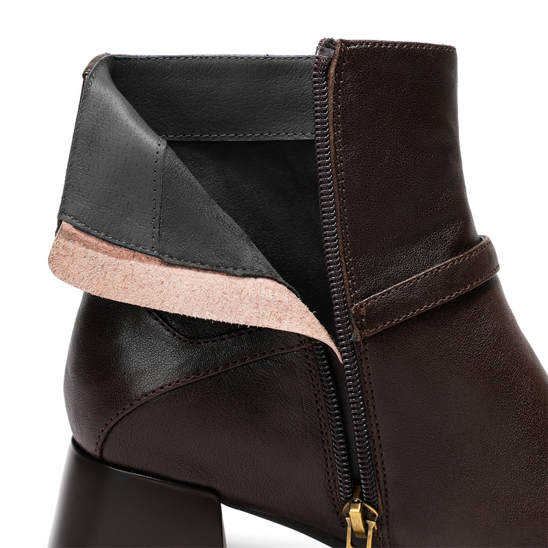 | 鞋底材质:橡胶底 | 靴筒内里材质:猪皮革其他 | 内增高:无 | 鞋面材质:羊皮革 | 闭合方式:侧拉链 |